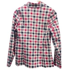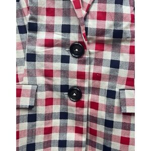 The English Factory Plaid Check Blazer in women's size medium is a stylish jacket suitable for both casual and business occasions. Made of cotton with a check pattern, this short-length blazer features long sleeves and a button closure. The multicolor design adds a touch of sophistication, while the regular fit ensures comfort. Perfect for the summer and spring seasons, this blazer from English Factory is a versatile addition to any woman's wardrobe.