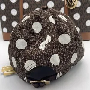 Michael Kors Women's Baseball Cap Hat Adjustable OS Chocolate BROWN DOTS NWT