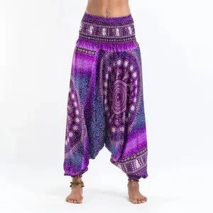 [New] Jumpsuit Style Drop Crotch Harem Pants (S-M) Purple-Blue-White Mandala