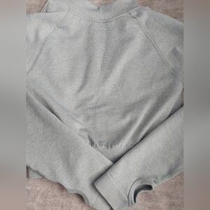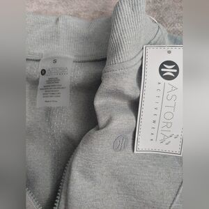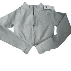 Notable features include thumb-holes, a fully adjustable zipper detail, and a crop fit chosen to flatter.