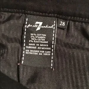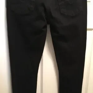Deep black distressed ankle “Gwenevere” jeans with stretch. Has two hand pockets, two back pockets, belt loops & a zipper fly. 98% cotton 2% spandex.