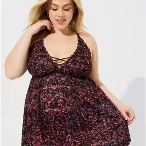 Dive into style with this Torrid babydoll lingerie, showcasing a vibrant blend of pink and blue hues. The floral design adds a touch of elegance, making it a perfect choice.