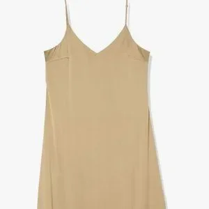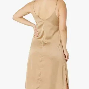 A lightweight silky lingerie-inspired style with a hint of stretch and a body-skimming fit. Dress it up or wear with sneakers for a versatile look. Side slits and adjustable straps, midi-length silhouette