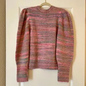 LoveShackFancy Pink Puff Shoulder Sleeve Crew Neck Sweater, NEW