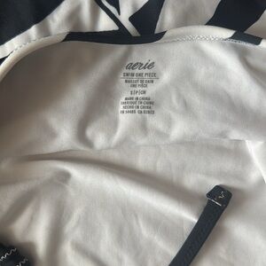 Chic one-piece swimsuit with a striking black and white design. Perfect for a stylish beach day.