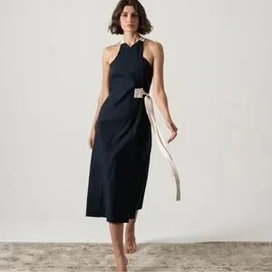 NWT LUXMII 🇵🇹 Linen Zulu Wrap Dress in Navy Midi Dress Portugal
