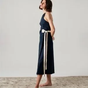 NWT! 🇵🇹 Linen LUXMII Zulu Midi Wrap Dress in Navy Luxury Made in Portugal