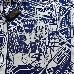 New Louis Vuitton Scarf Luggage Travel Stamps Blue Silk Scarf Wrap