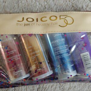 BRAND new shampoo set by Joico. Each bottle is 1.7 fl oz. Perfect for travel! Defy Damage shampoo, K-pak Color Therapy shampoo, moisture recovery shampoo, and color balance purple shampoo. Comes in a cute carrying case that's perfect for travel and can be multi-purposed.