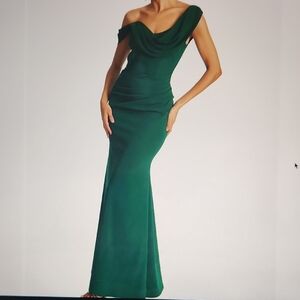 Chiffon/Scuba Crepe Asymmetrical Cowl Neck Maxi Dress