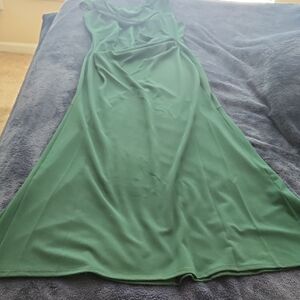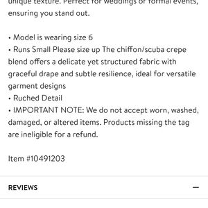 The chiffon/scuba crepe blend offers a delicate yet structured fabric with graceful drape and subtle resilience. The draping makes this dress extremely flattering on a curvy figure.