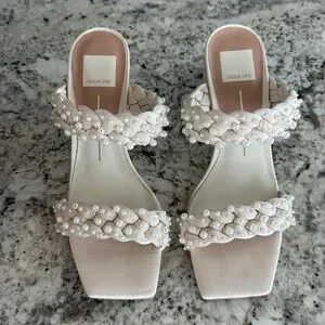 NEW DOLCE VITA womens paily pearl heeled sandals in vanilla pearl 8.5 block heel