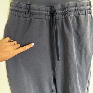 Features: Soft fabrication with stretchy feel; square neckline and detailed bust seaming; large side pockets; ruching around the knee; elastic ankle cuffs; straight-leg bottom; adjustable drawstring waistband