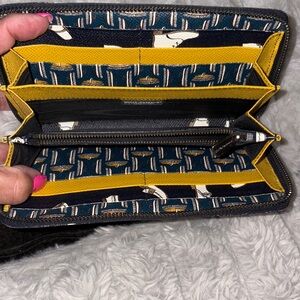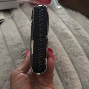 Chic black wallet by Dolce & Gabbana. Features a playful shoe motif in cream and tan.