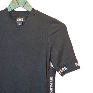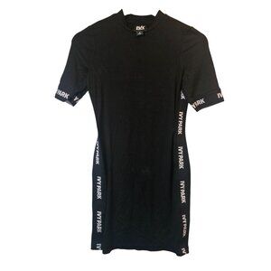 Ivy Park Tight Fit Mini Bodycon with Spellout Ribbon, Black White, Sz S