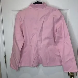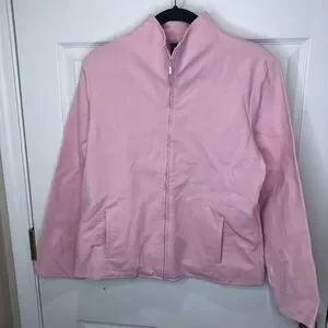 Eileen Fisher pink zip front long sleeve jacket with pockets. A few small stains but otherwise good condition., size medium