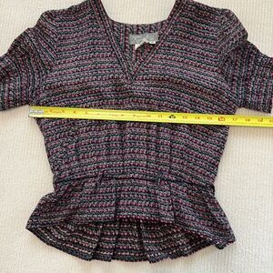 Stylish two-piece summer set featuring a v-neck top with bottom ruffle and skirt . The black and pink floral pattern adds a feminine touch. You can wear the top separate with a pair of jeans for a more casual look. Perfect skirt and top set for any formal occasion or office wear.