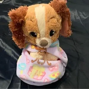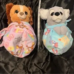 EUC Adorable Disney Lady and Tramp plush toys. Adorable puppies wrapped in cozy blankets. Perfect to cuddle and play with or as collectibles. 11 inches tall.