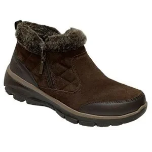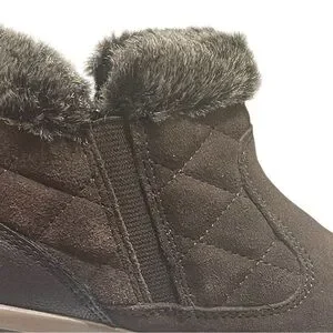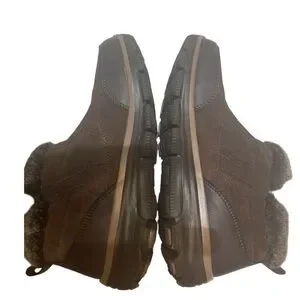 Built for comfort and warmth during the chilly days. These boots are perfect, suede upper, air cooled memory foam synthetic sole, finished with 3M scotch guard for water repellence, low profile with easy zip construction. Quilt inspired stitching and nice plush collar. These boots are part of Women’s athletic footwear from Finish Line. Excellent preowned condition.