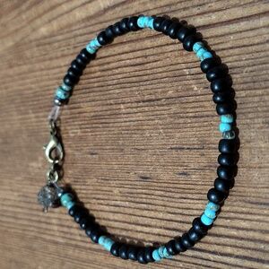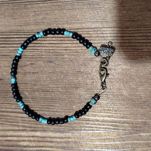 Stylish black and blue beaded bracelet with a unique clasp design. Perfect for adding a touch of elegance to any outfit.
