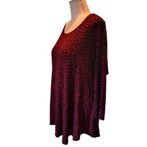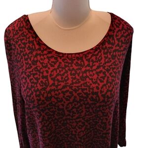 JM Collection Womens Size 0X Red & Black Animal Print 3/4 Sleeve Top Stretchy