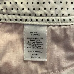 These Talbots red Bermuda shorts offer a crisp and structured look, perfect for dressy casual occasions. Made from a sturdy cotton blend (98% cotton, 2% spandex), they feature a flat front design and knee-length cut for a classic appearance. Size 2 (30” waist), 10.5” inseam. One barely noticeable stain on back of right leg (see photo with area circled)