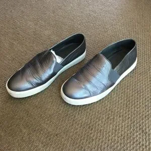 Vince Metallic Grey Leather Slip-Ons
