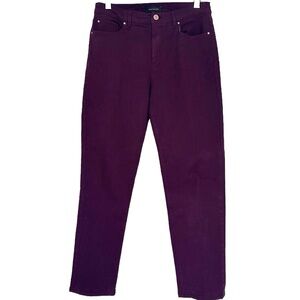 “The Taper” sculpting pocket mid rise jean is designed in performance stretch denim to flatter and support your shape. Classic five pocket style with belt loops and a front zip and button closure. Tapered leg. Full length. Fabric: 98% Cotton and 2% Spandex. Wash inside out with like colors. Color: Plum Rose. Size 4. New without Tags. Style #597609.