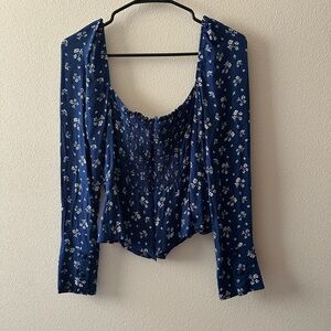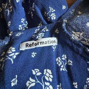 Reformation nell top blouse in maison blue and white floral corset fit size 8