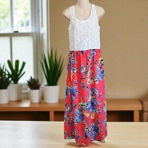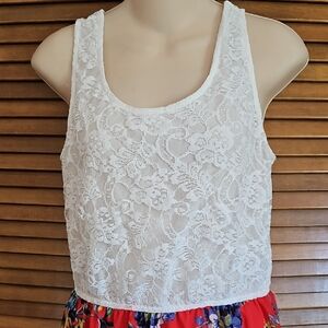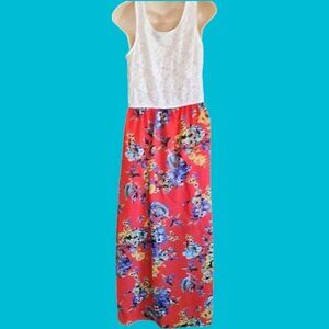 Speed Control Floral Red Maxi Skirt White lace top sleeveless