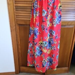 This vibrant red maxi skirt features a stunning floral pattern, perfect for adding a pop of color to your wardrobe. Ideal for casual outings or special occasions.