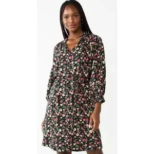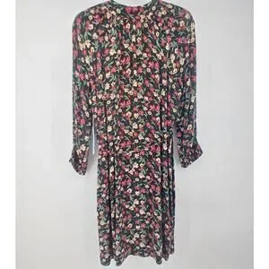 NWT Draper James Floral Knee Length Dress Tie Waist 3/4 Sleeve Elastic Cuffs Womens SM Cottage Prairie Romantic