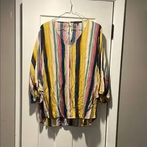 Staccato Yellow and Blue 3/4 Sleeve Boxy Blouse