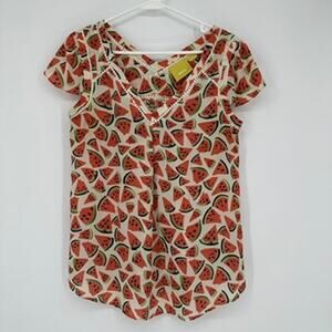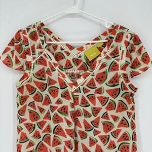 Anthropologie Maeve Blouse Womens 6 Watermelon Picnic Summer Preppy Lightweight