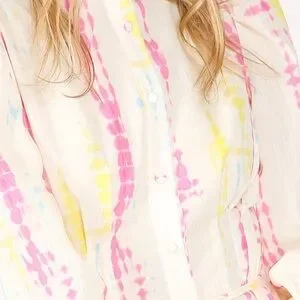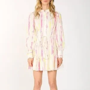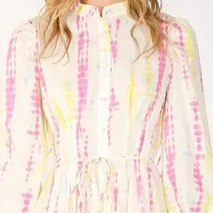 NWT Beulah Women's SZ L Shirt-dress Tie-Dye Bishop Sleeve Tiered Preppy Dress
