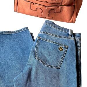 Tory Burch Jeans, Cropped Bootcut Jeans, Marble Washed Denim, Designer Jeans, Japanese Denim, Light Wash Jeans, Women’s Size 25, Bootcut Crop Jeans, Tory Burch Denim, Casual Designer Jeans, Going Out, Brunch Outfit, Festival Jeans, Luxury Denim