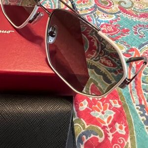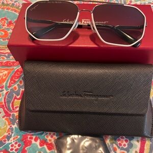 Chic Salvatore Ferragamo sunglasses with a metallic frame. Includes a sleek black case. Brand new never worn.