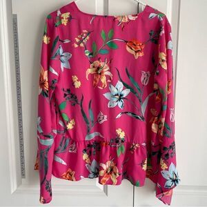 Laundry by Shelli Segal Pink Floral Bell Sleeve Blouse Women’s Large Ruffle Waist