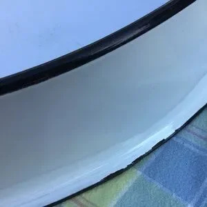 The last two pictures show what is likely residue, from use, in the crevice on the underside of the bottom roaster pan.