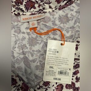 Stylish blouse with intricate purple patterns. Soft fabric and elegant design.