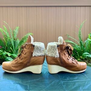 Kelsi Dagger Brown Ankle Boots with Sherpa Cuff and Wooden Heel