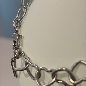 This is the James Avery connected hearts, charm bracelet. This is the large one which is 8 inches long. Bracelet is in really well condition all it needs is a nice buffing. Closure is a lobster claw. Sterling silver 925, James Avery Stamped. Feel free to ask any questions.