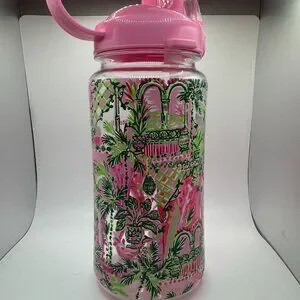 NEW never used Lilly Pulitzer water bottle, about 1.5 L, pine w/ Mandevilla Baby Always Worth It design. Strap and straw included.