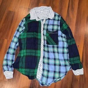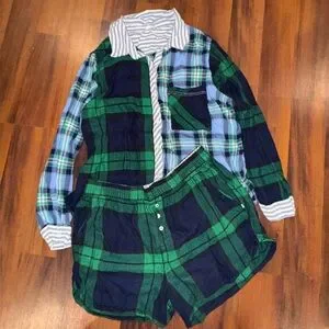 Chic Aerie shirt and shirt pajama set in blue and green plaid. Perfect for a comfy sleep.