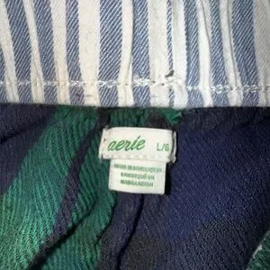 Aerie Striped Shirt and Short Pajama Set in Blue and Green Plaid Size Large