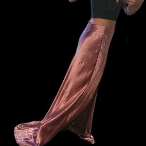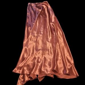Elevate your evening ensemble with this exquisite gold maxi skirt from LoveShackFancy, designed for cocktail occasions. The A-line silhouette gracefully flows with a stylish slit, adding a touch of sophistication and allure. Crafted with a luxurious finish, this skirt is a statement piece for any night out. some slight pulling in fabric, doesn't take away from the overall look and appearance.