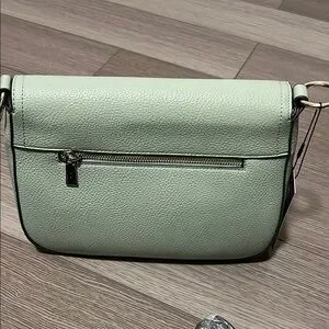 Elevate your style with this chic mint green women's bag featuring a distinctive V emblem. Perfect for any occasion, this bag combines elegance and functionality. It is a Crossbody bag. The strap is inside.