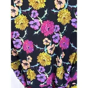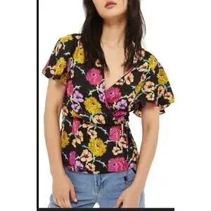 Topshop Floral Wrap Blouse Womens Size 10 Black Yellow Preppy Classic NWT