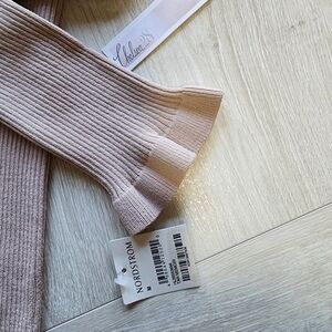 NWT Chelsea28 Ribbed V-neck Ruffled Sleeve Tan Sweater - Medium