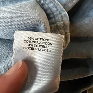 NWT, Lucky Brand Denim High Low Blouse, 3/4 Puff Sleeve, V Neck, Blue, Med